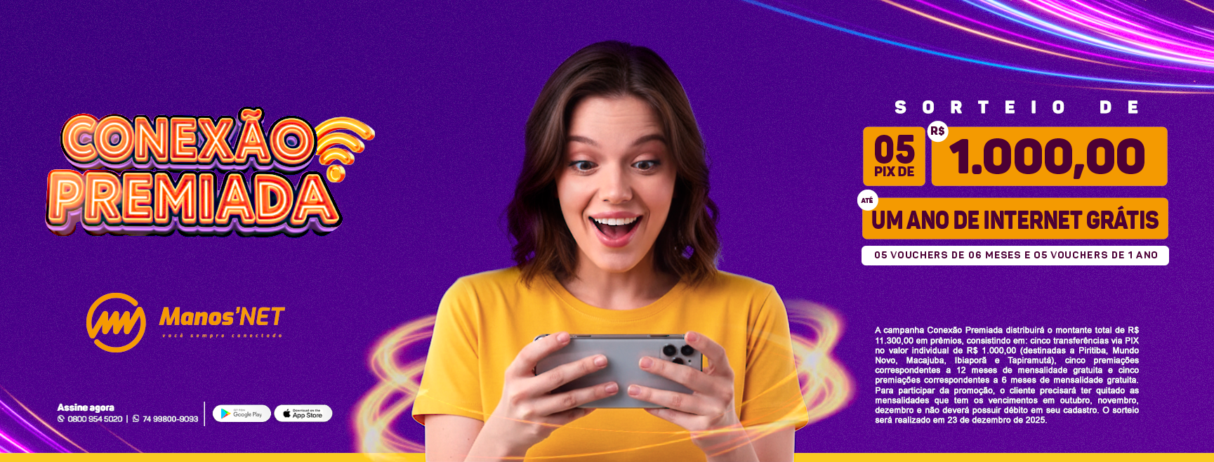 Quem escolhe a Manos'NET temInstalação GrátisLink via Fibra ÓpticaSuporte 24/7